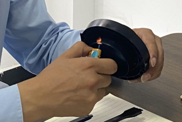 1、先把阻燃尼龍加工成5mm的薄片,然后用火點(diǎn)燃薄片,把薄片傾斜45°角,如果薄片在5s內(nèi)自己熄滅的話,那么這個就是V0級的。