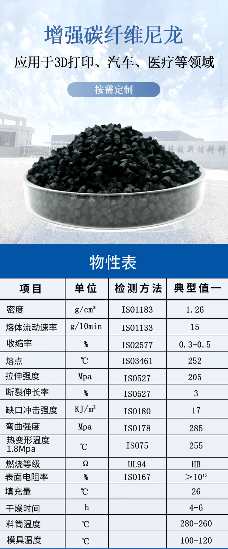 尼龍加碳纖。屬于導電尼龍的一種,在尼龍基料里加入碳纖維, 使材料具有更高的模量和剛性。應用于3D打印領域、汽車領域、自定義制造、醫(yī)療領域、電子產品領域