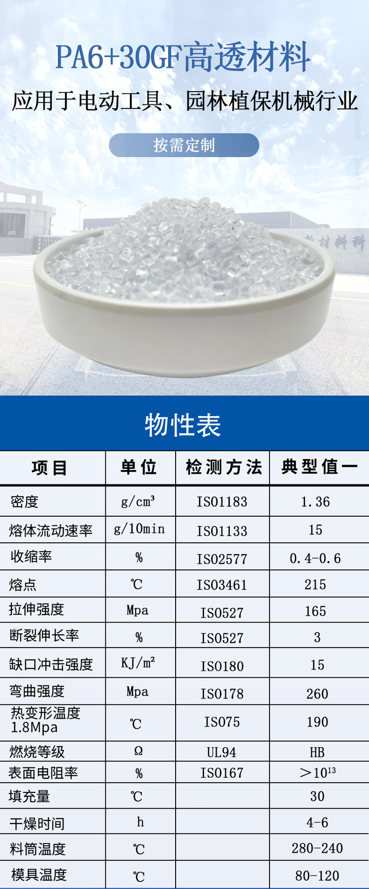 具有高透明度,高白度,在電動工具行業(yè)、園林植保機械行業(yè)得到廣泛應用